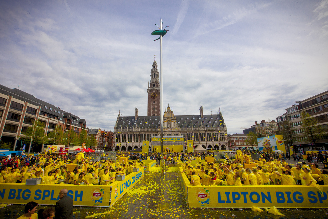 Copywriter: Ludo Truyens - art director: Bert Braet - agency: SPITZ Sensibiliseringscampagne voor de Stad Leuven tegen het gooien van kauwgom op de grond. We monteerden tientallen echte schoenen, broeken en handtassen over heel de binnenstad, vergezeld van de actiesticker. Gekoppeld aan een aantal XL-props en een wedstrijd. Resultaat: veel aandacht in de publieke opinie en de binnen- en buitenlandse pers.